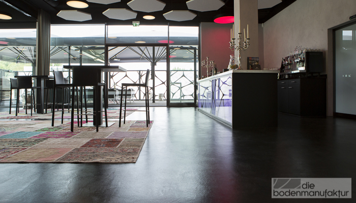 200 m² Herstellen eines handgespachtelten Pandomo-Loft Floors, Ardex K2, Farbe: schwarz, inkl. Liefern, Einbauen und Anarbeiten einer Kamin-Metallplatte